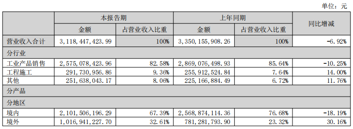 1.公司營業(yè)收入較上年同期下降18.86%,主要原因?yàn)椋?025年上半年,光伏行業(yè)處于深度調(diào)整階段,整體開工率處于低位,終端需求下滑,導(dǎo)致公司用于光伏行業(yè)的真空泵產(chǎn)品營業(yè)收入相應(yīng)下滑。