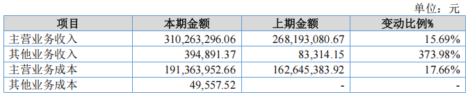 2.其他業(yè)務(wù)收入增幅較大,主要系廢料收入增長所致。